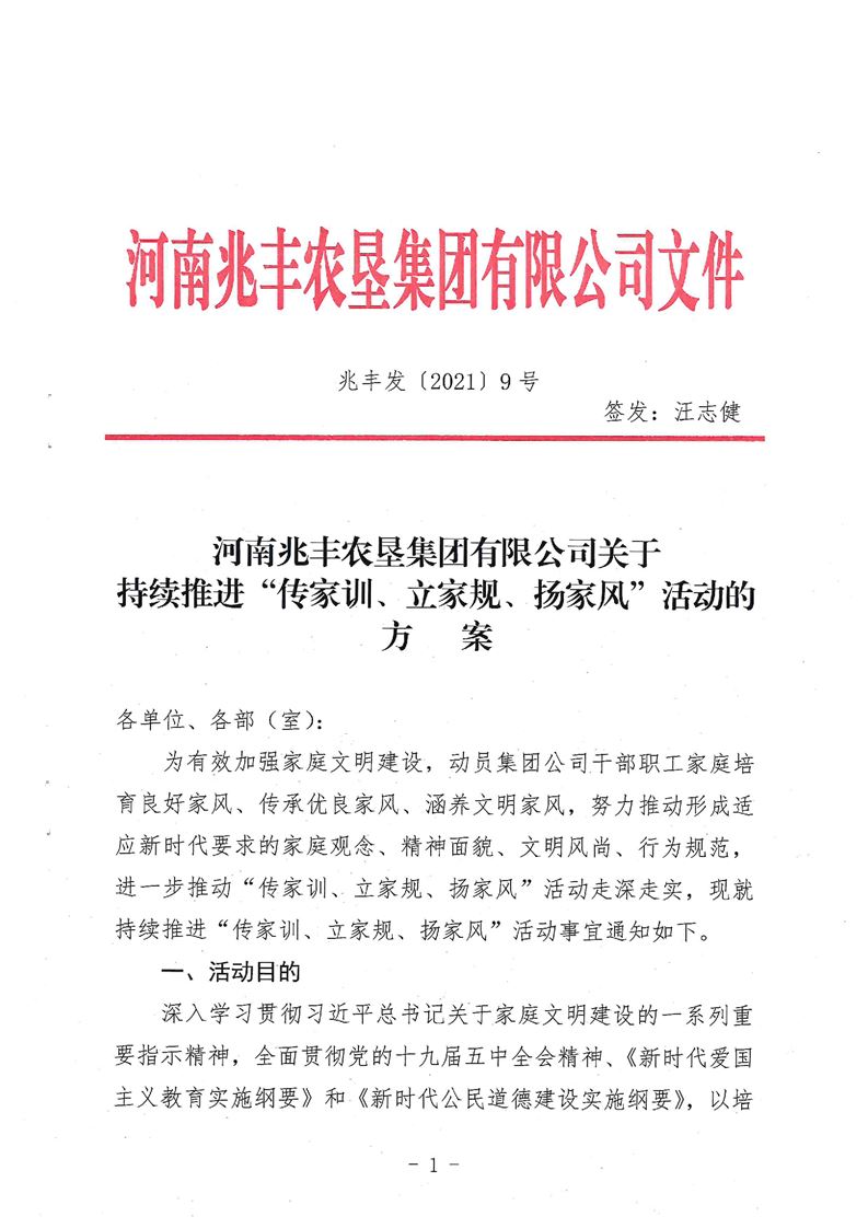 · 河南兆豐農墾集團有限公司 持續推進“傳家訓、立家規、揚家風”活動的方案