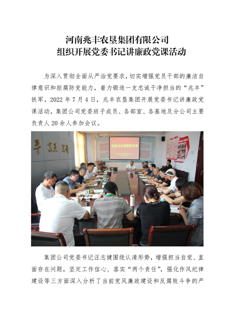 · 河南兆豐農墾集團有限公司 組織開展黨委書記講廉政黨課活動