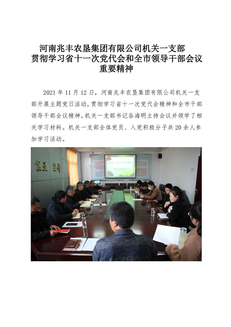 · 河南兆豐農(nóng)墾集團(tuán)有限公司 機(jī)關(guān)一支部貫徹學(xué)習(xí)省十一次黨代會和全市領(lǐng)導(dǎo)干部會議重要精神