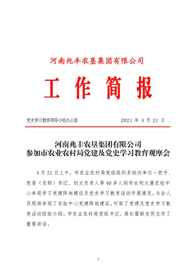 · 河南兆豐農墾集團有限公司 參加市農業農村局黨建及黨史學習教育觀摩會