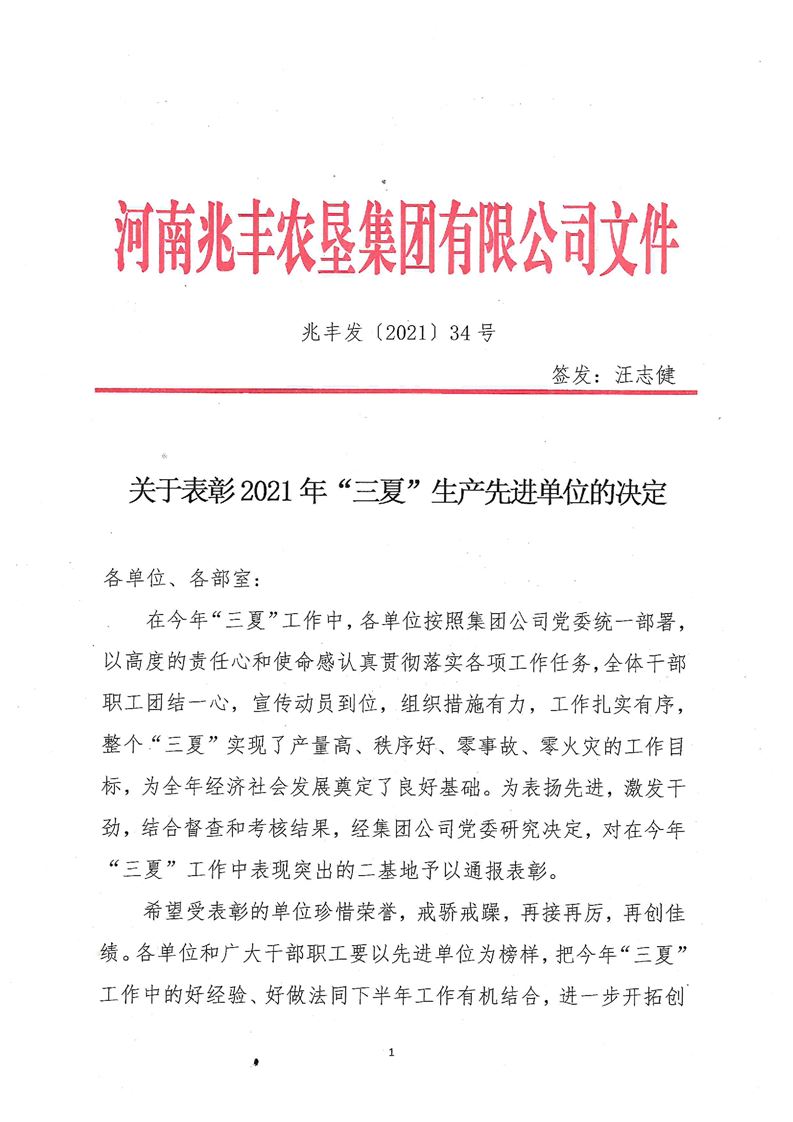 · 河南兆豐農(nóng)墾集團(tuán)有限公司 關(guān)于表彰2021年“三夏”生產(chǎn)先進(jìn)單位的決定