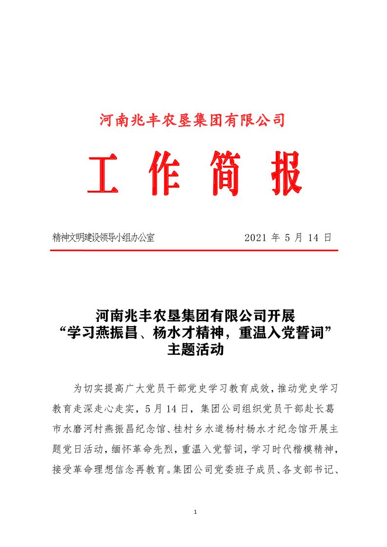 · 河南兆豐農墾集團有限公司 開展 “學習燕振昌、楊水才精神,重溫入黨誓詞”主題活動