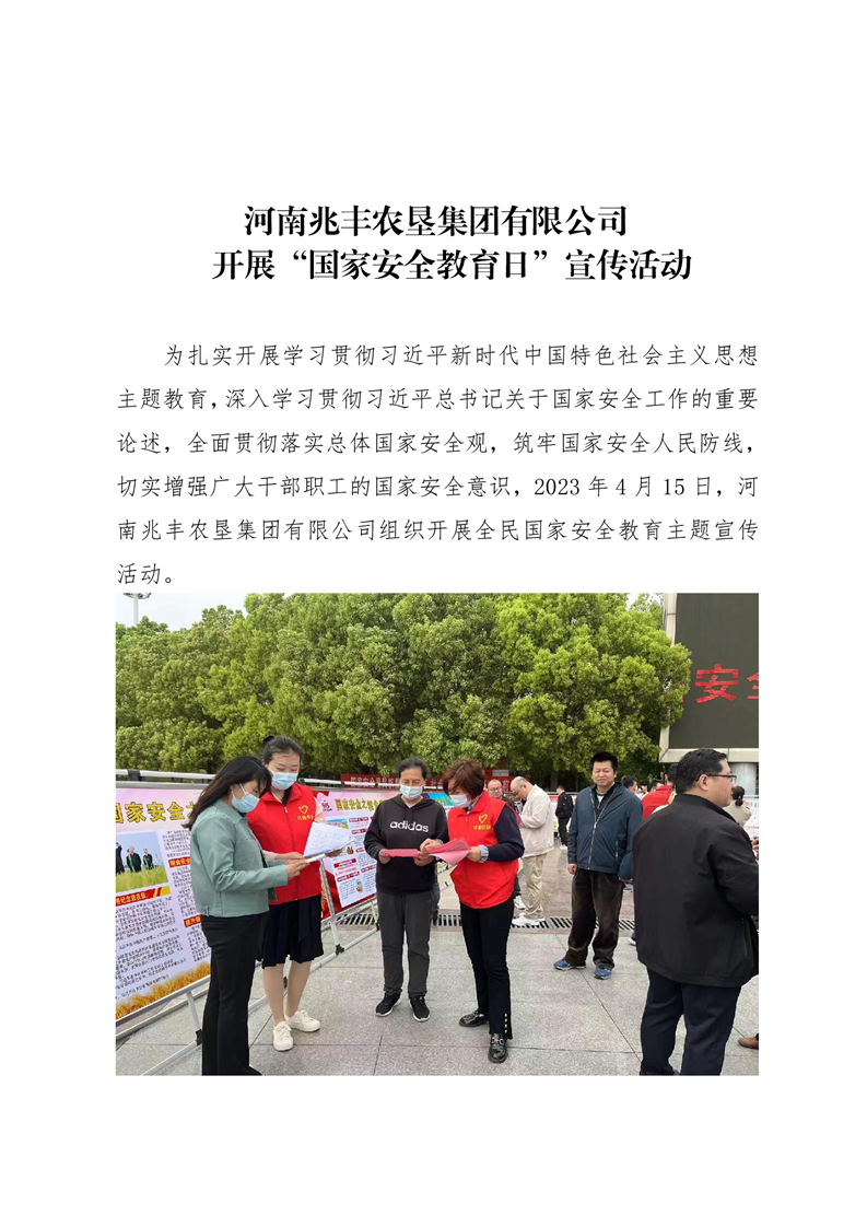 · 河南兆豐農墾集團有限公司 開展“國家安全教育日”宣傳活動