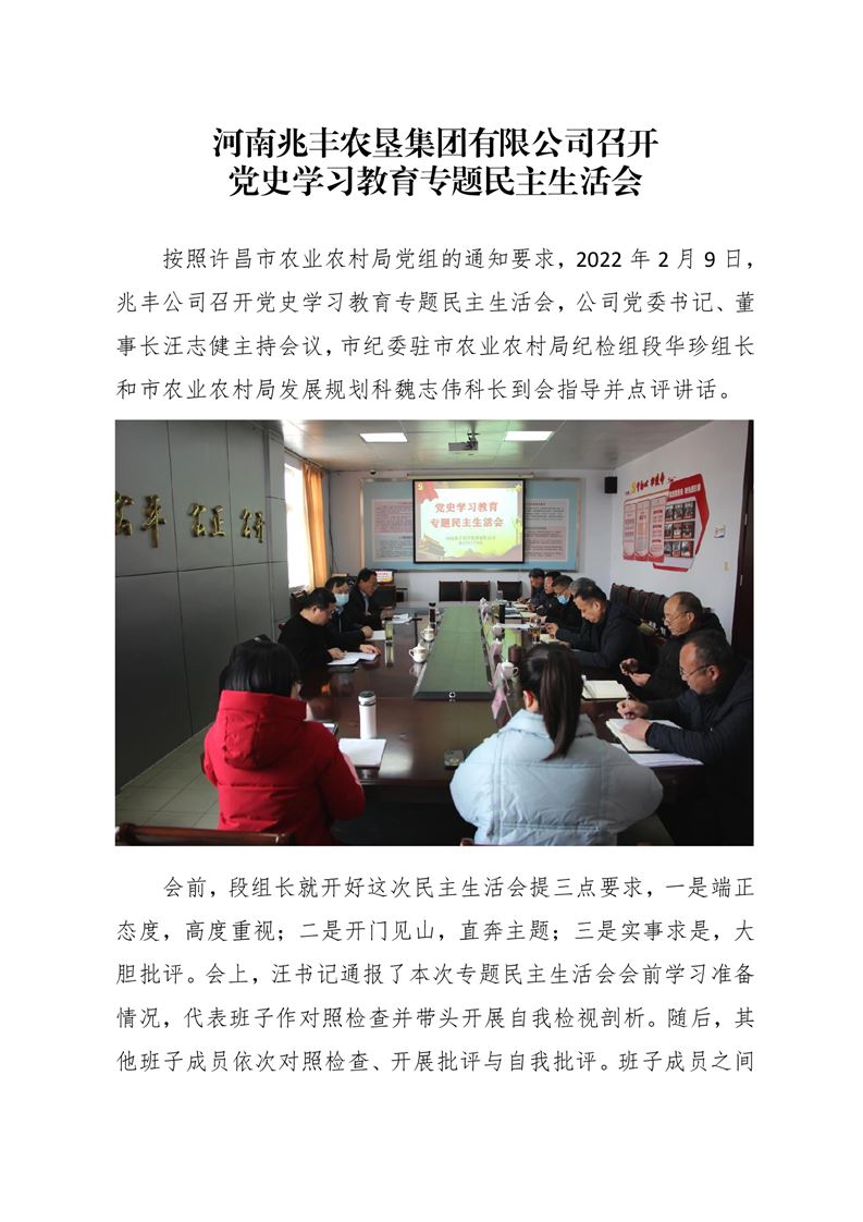 · 河南兆豐農墾集團有限公司召開 黨史學習教育專題民主生活會