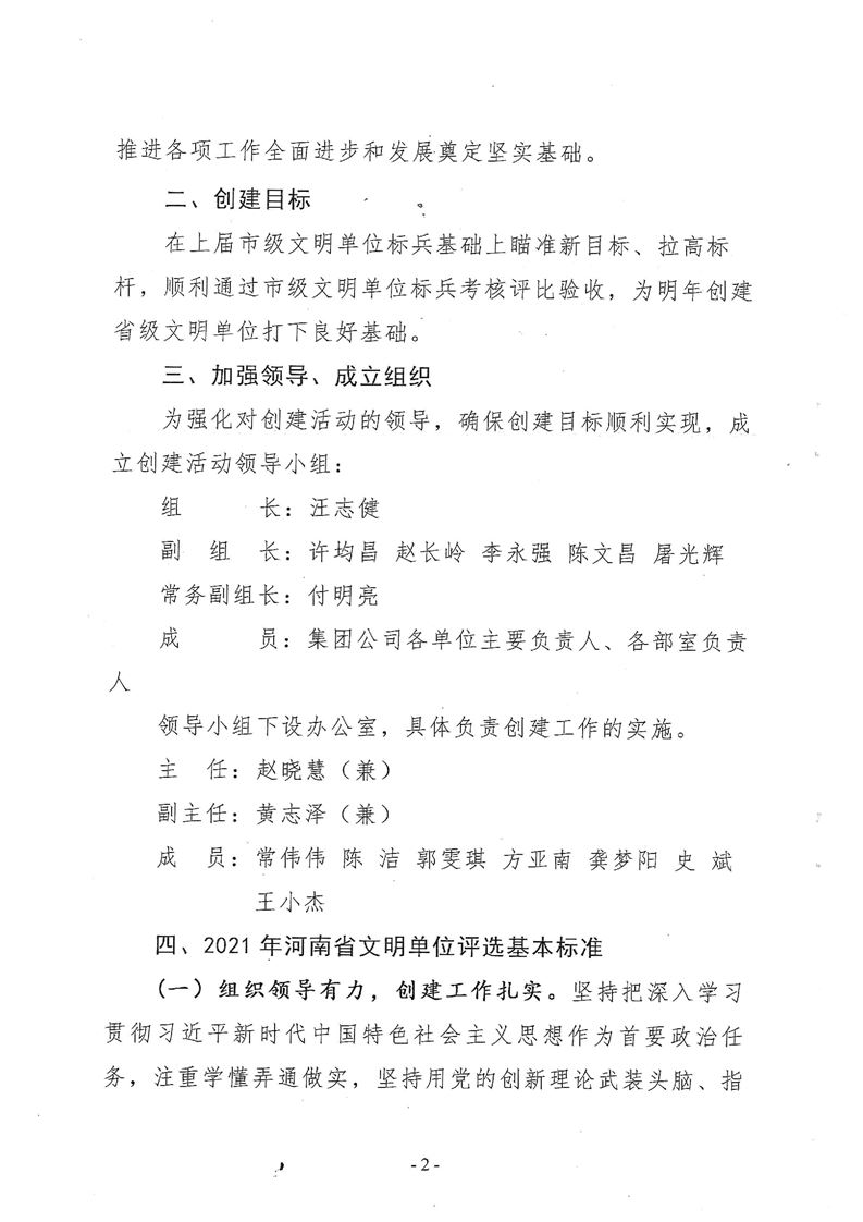 · 河南兆豐農墾集團有限公司 2021年創建市級文明單位標兵實施方案