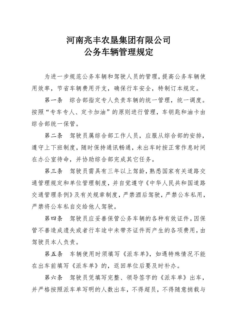 河南兆豐農墾集團有限公司 公務車輛管理規定