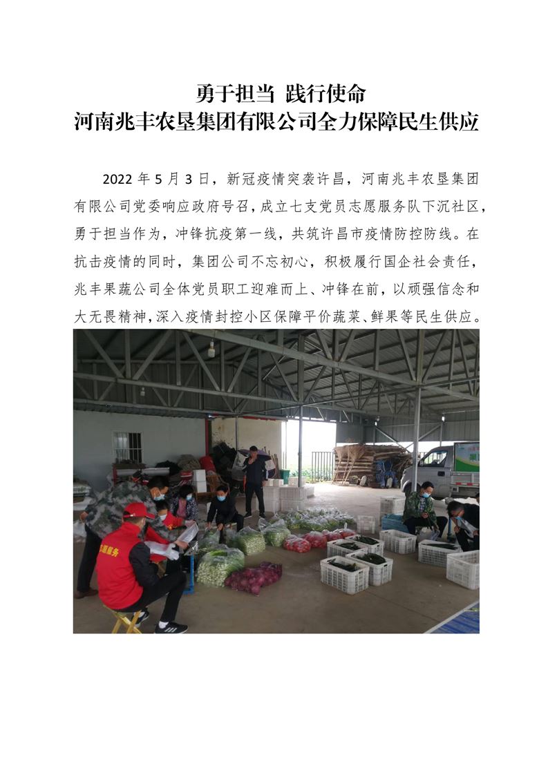 · 勇于擔當 踐行使命 河南兆豐農(nóng)墾集團有限公司全力保障民生供應