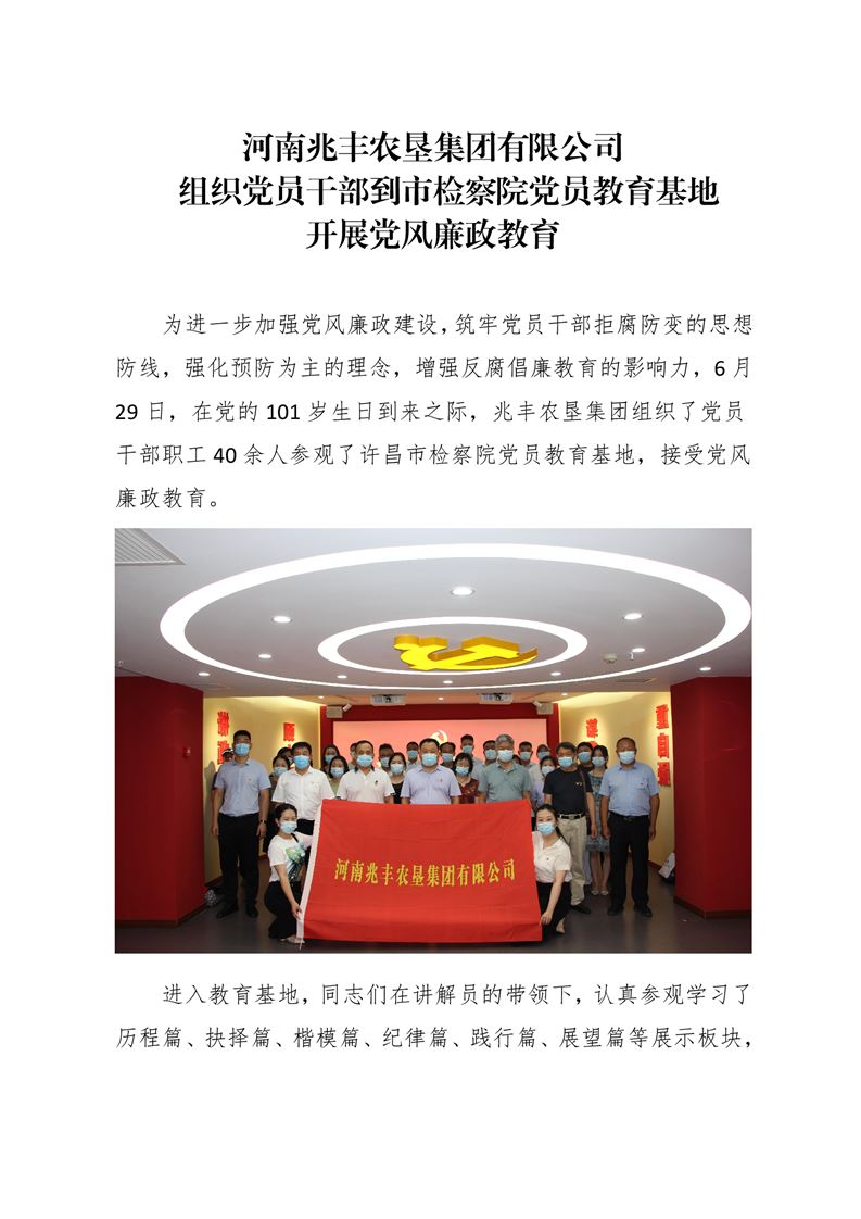 · 河南兆豐農墾集團有限公司 組織黨員干部到市檢察院黨員教育基地開展黨風廉政教育