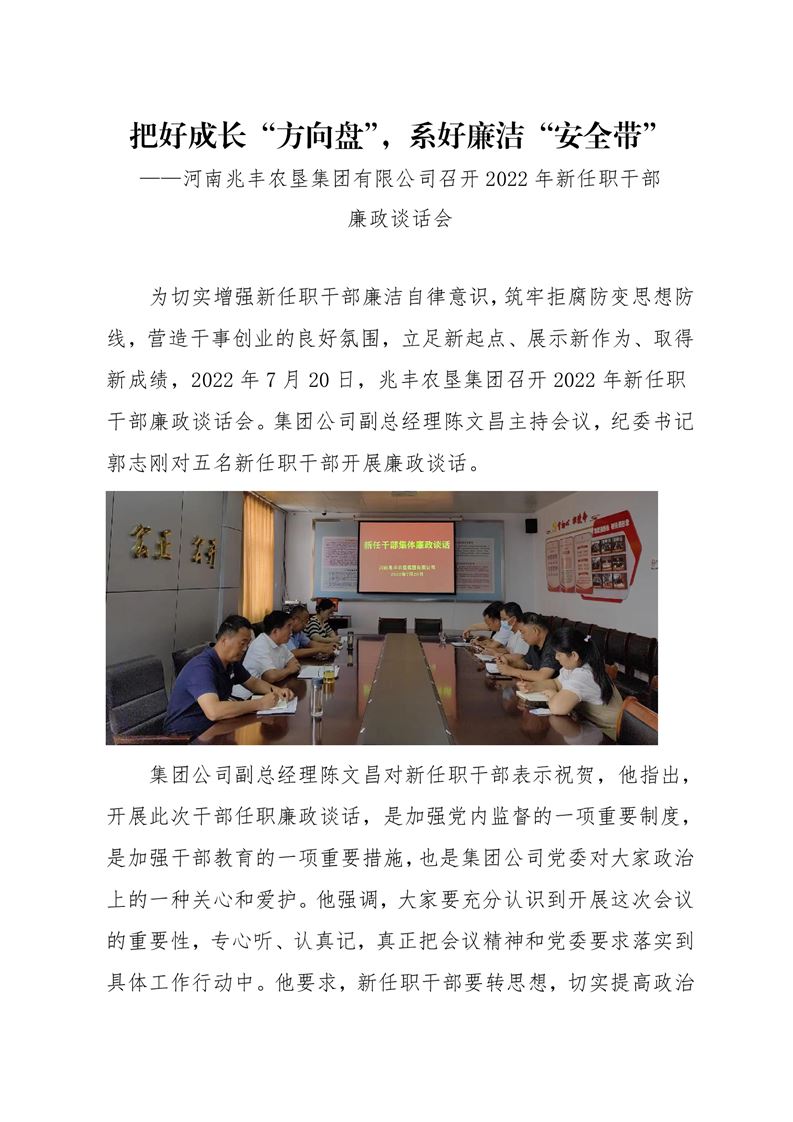 · 把好成長“方向盤”,系好廉潔“安全帶” ——河南兆豐農墾集團有限公司召開2022年新任職干部 廉政談話會