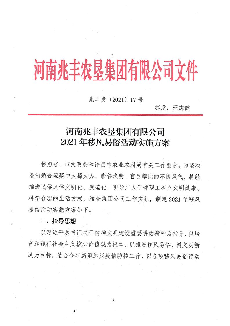 · 河南兆豐農墾集團有限公司 2021年移風易俗活動實施方案