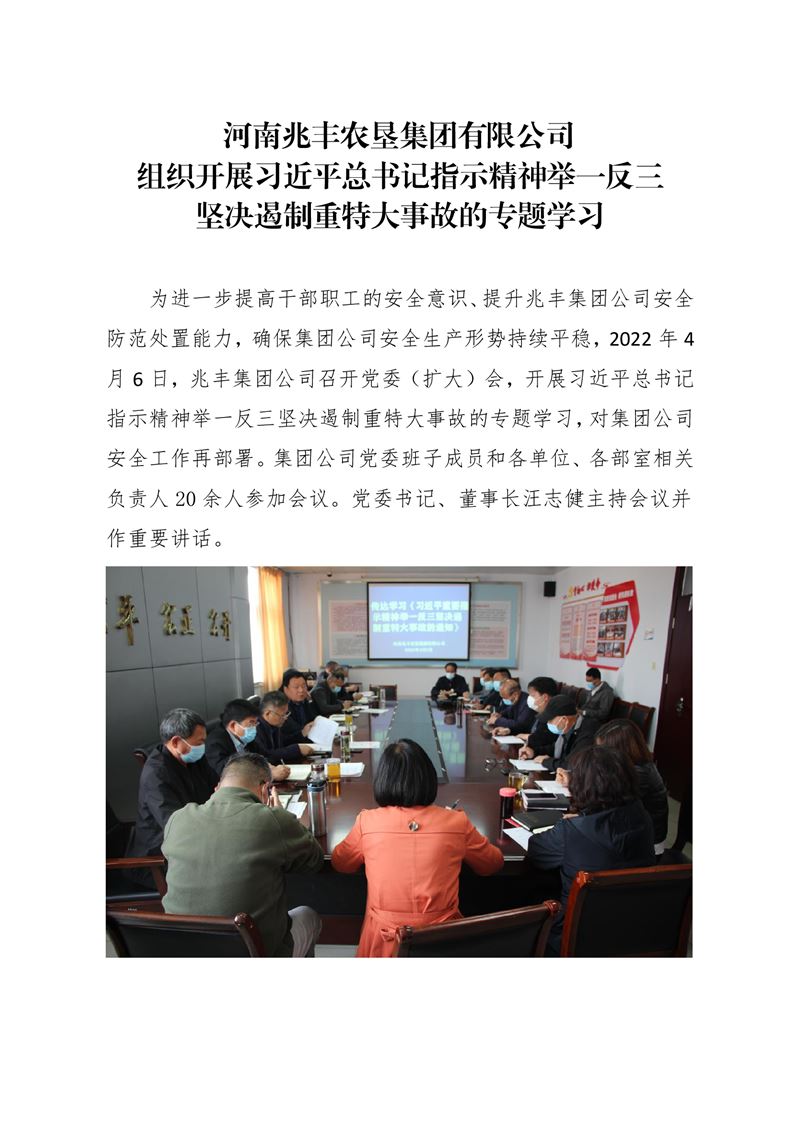 · 河南兆豐農墾集團有限公司 組織開展習近平總書記指示精神舉一反三堅決遏制重特大事故的專題學習