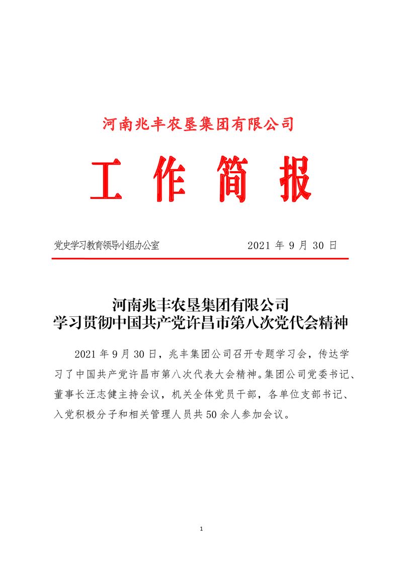 · 河南兆豐農墾集團有限公司 學習貫徹中國共產黨許昌市第八次黨代會精神