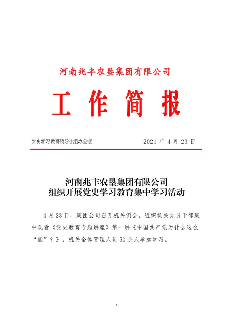 · 河南兆豐農墾集團有限公司 組織開展黨史學習教育集中學習活動