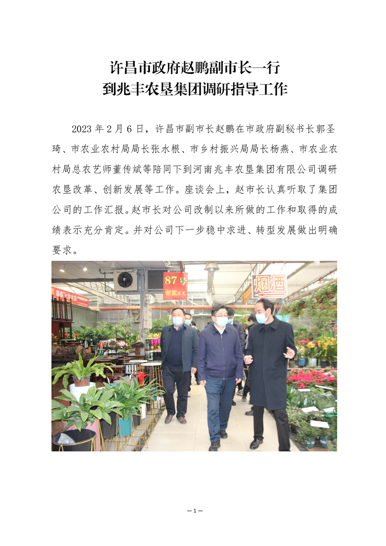 · 許昌市政府趙鵬副市長一行 到兆豐農(nóng)墾集團調(diào)研指導工作