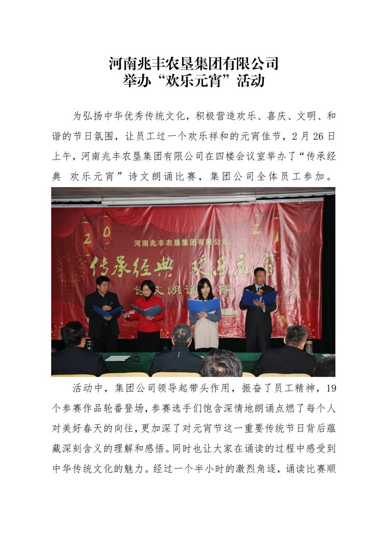 · 河南兆豐農(nóng)墾集團(tuán)有限公司 舉辦“歡樂元宵”活動(dòng)