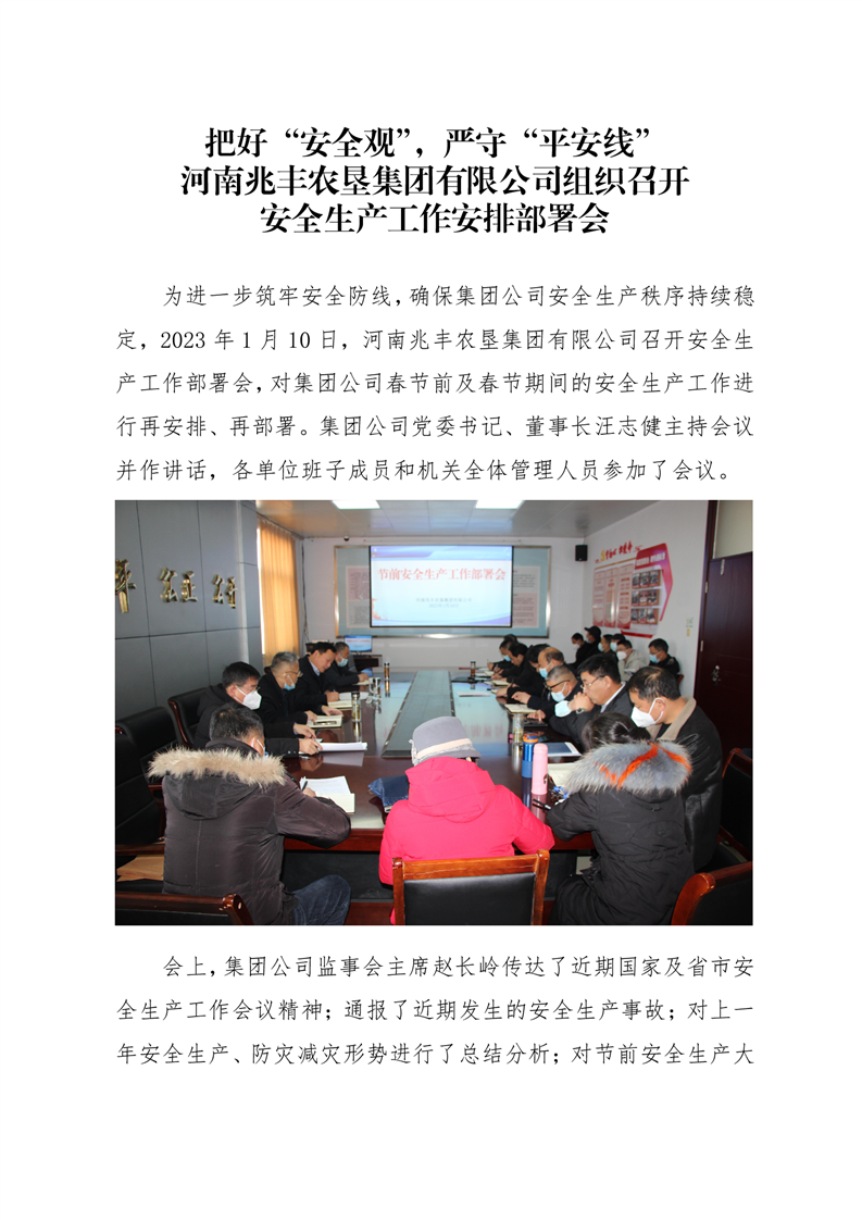 · 把好“安全觀”,嚴守“平安線” 河南兆豐農墾集團有限公司組織召開 安全生產工作安排部署會