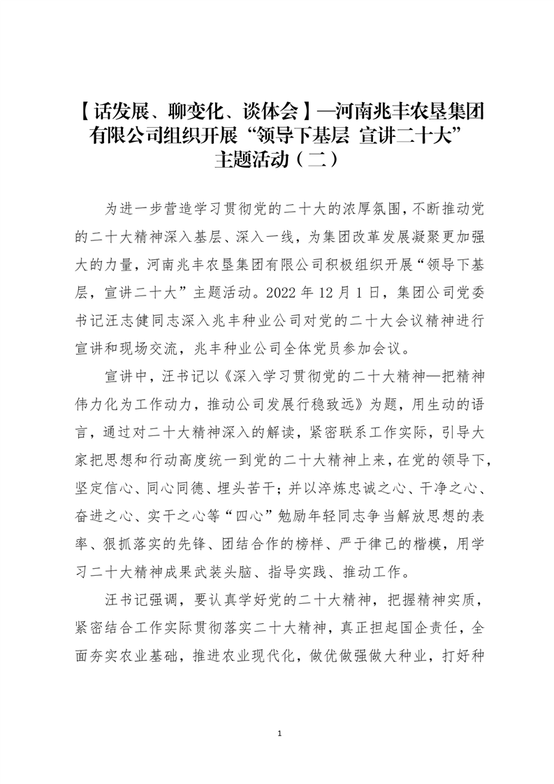 · 【話發(fā)展、聊變化、談體會(huì)】—河南兆豐農(nóng)墾集團(tuán)有限公司組織開展“領(lǐng)導(dǎo)下基層 宣講二十大” 主題活動(dòng)(二)