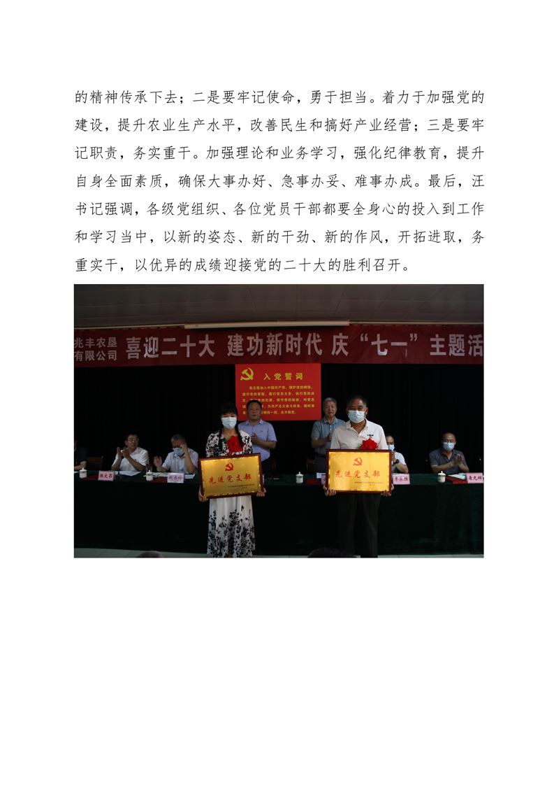 · 河南兆豐農墾集團有限公司 開展“喜迎二十大 建功新時代”慶“七一”系列活動
