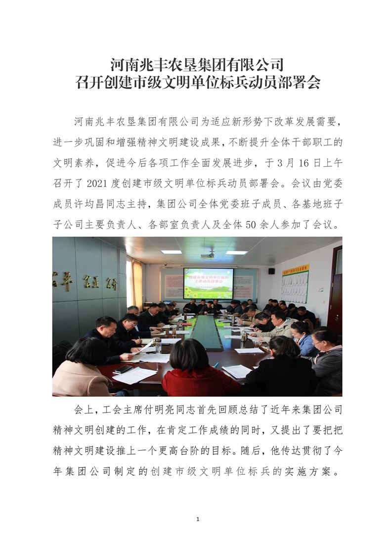 · 河南兆豐農(nóng)墾集團(tuán)有限公司 召開創(chuàng)建市級文明單位標(biāo)兵動員部署會