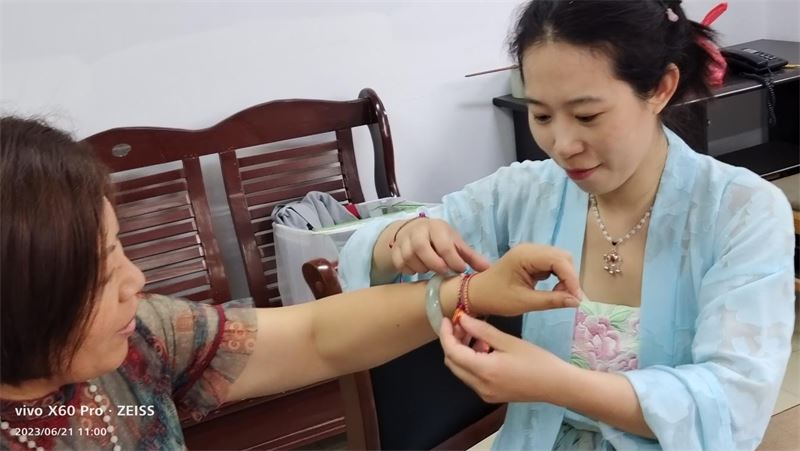 活動(dòng)前,公司職工食堂提前準(zhǔn)備好了粽葉、糯米、蜜棗等食材。活動(dòng)現(xiàn)場,包粽子能手現(xiàn)場講解包粽子的手法和技巧。女同志身著漢服,紛紛拿出看家本領(lǐng),只見靈巧的雙手上下翻飛,將粽葉旋成一個(gè)漏斗,填充上少許糯米,佐以喜好的餡料,再蓋上一層糯米充實(shí)壓緊,最后折疊上兩層粽葉,打一個(gè)繩結(jié),一個(gè)個(gè)精致有型的粽子迅速成型。不一會(huì)兒,長條形、三角形等各式各樣的漂亮粽子,就這樣一個(gè)個(gè)在她們手中誕生了,大家包得越來越得心應(yīng)手,臉上也不由得露出開心的笑容。粽子包完了,仙女們又互相戴上有祈福意義的五色繩,互相祝福,活動(dòng)現(xiàn)場既溫馨又愉快。
