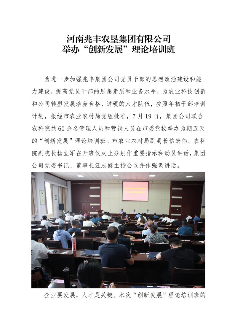 · 河南兆豐農墾集團有限公司 舉辦“創新發展”理論培訓班