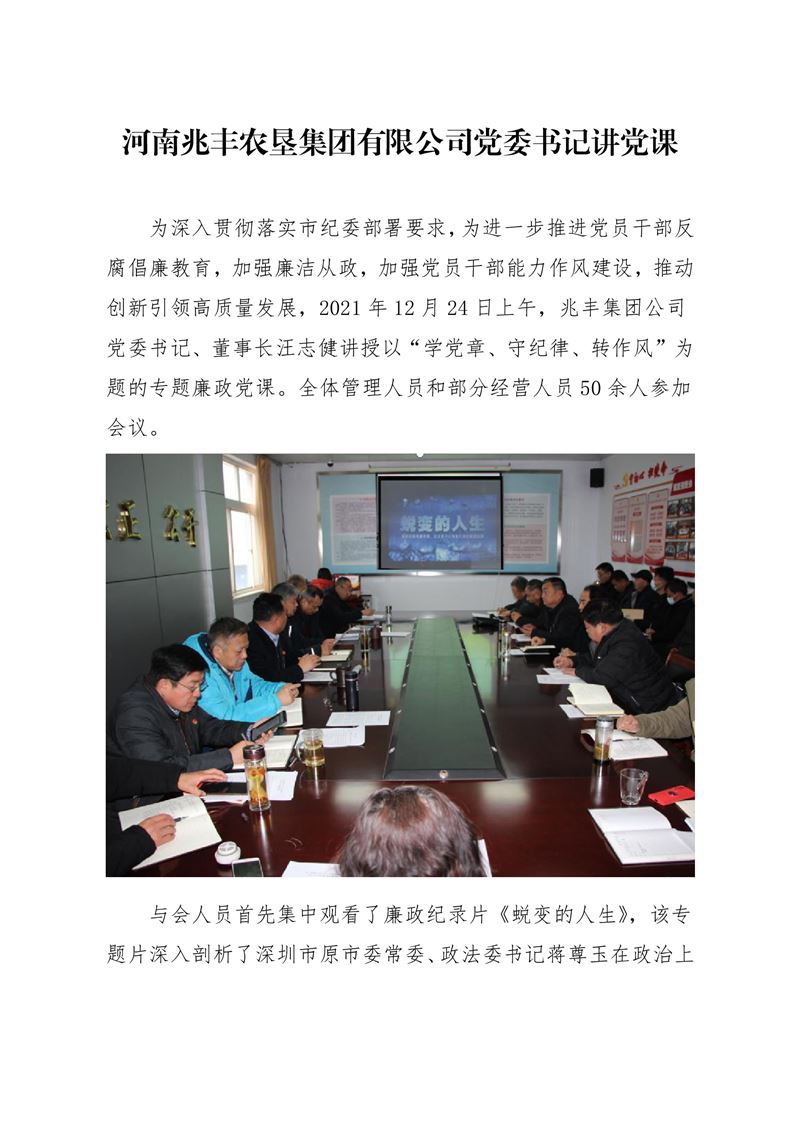 · 河南兆豐農墾集團有限公司 黨委書記講黨課