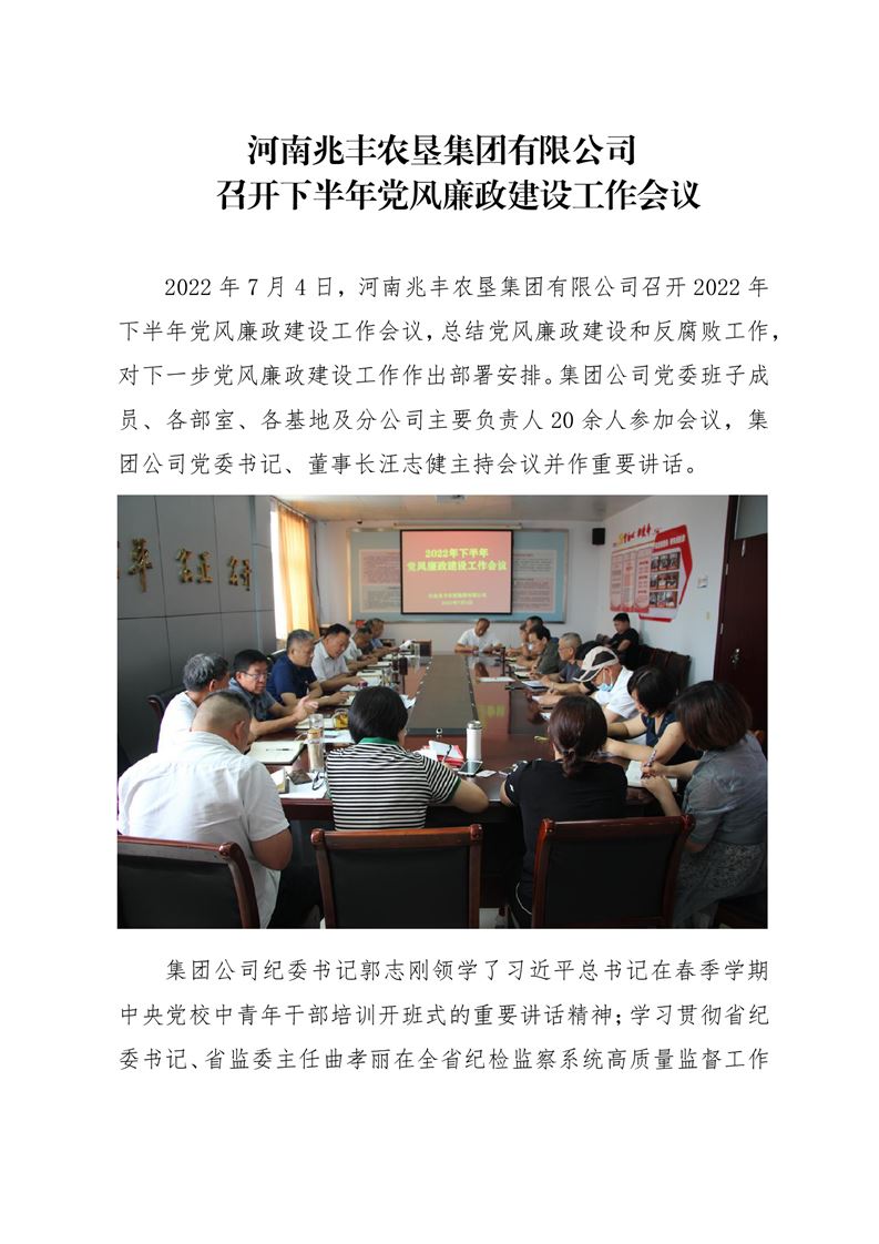 · 河南兆豐農(nóng)墾集團(tuán)有限公司 召開(kāi)下半年黨風(fēng)廉政建設(shè)工作會(huì)議